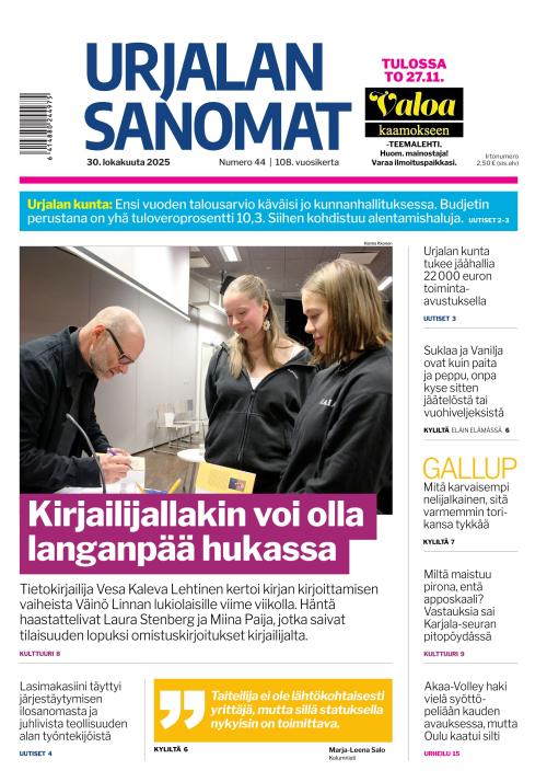 Urjalan Sanomien näköislehti siirtyi maksumuurin taakse 1.1.2021, jonka jälkeen vain kirjautuneet käyttäjät pääsevät lukemaan näköislehteä. Kirjaudu sisään täällä lukeaksesi lehteä.